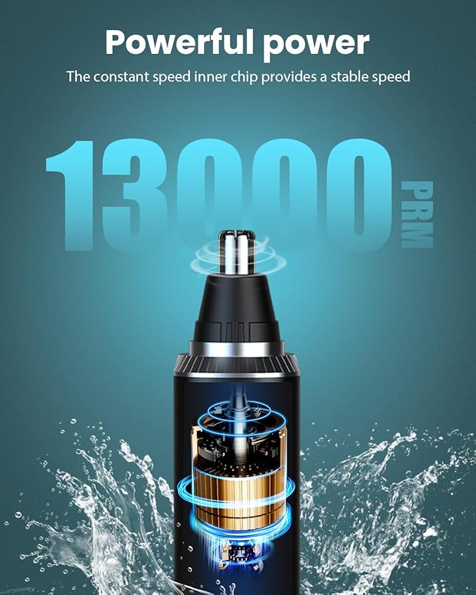 • Powerful & Painless Trimming: Equipped with an upgraded copper-core motor and 360° rotating dual-blade system, this trimmer offers efficient and painless trimming at 13,000 RPM, ensuring accurate hair removal without pulling or damaging hair