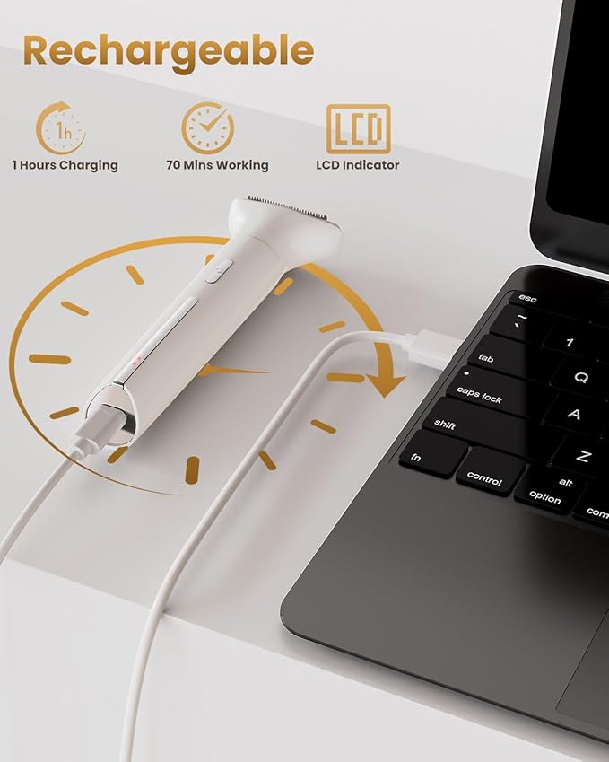 - 【Rechargeable & Portable】With a USB charging cable for on-the-go charging, the bikini trimmer runs up to 90 minutes on 1.5 hours charge. Keep your grooming routine intact wherever you are with our cordless electric shaver. Lightweight, compact, and includes a storage bag — the ideal travel companion for easy, convenient grooming.