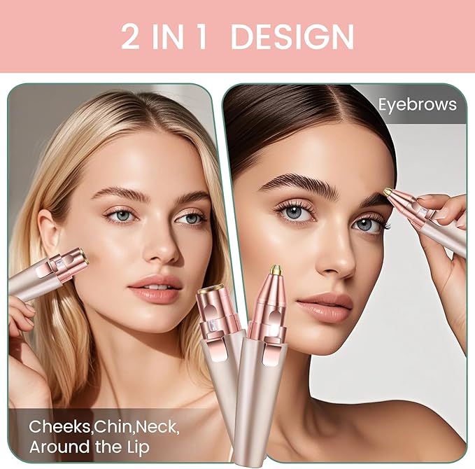 • GENTLE & PAINLESS: The 2-1 women's hair remover is suitable for daily use to keep up with hair regrowth and leave it smooth, specially designed for use on eyebrows, upper and lower lip, cheeks, chin, and neck. Works on peach fuzz or fine hair. Go slow with circular movements and it will do the job