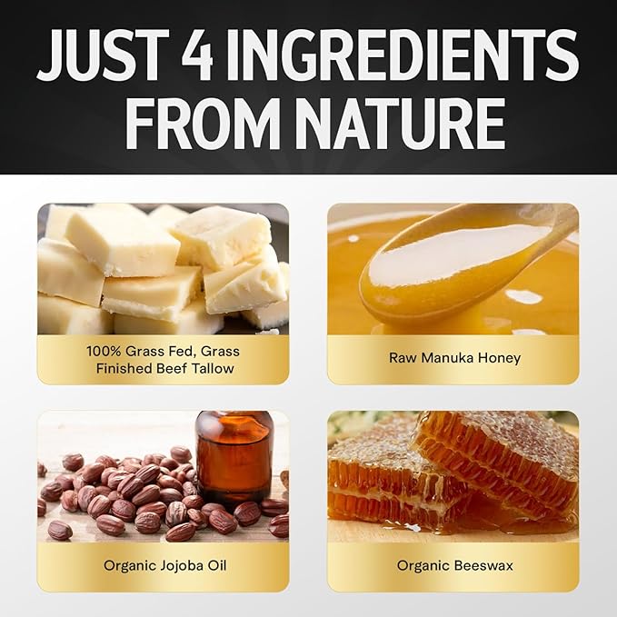 • Natural Ingredients: Benefit from an organic beef tallow moisturizer; free from synthetic additives and perfect for sensitive skin