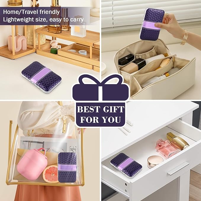 • 【Giftable Leather Case】our travel eyebrow tweezers set comes with a luxurious compact pu leather case,exquisite appearance and portable size. Steady purple PU leather case and and eye-catching purple lining, stylish and functional, tweezers for eyebrow kit for Christma Stocking Stuffers for Women Men Adults.