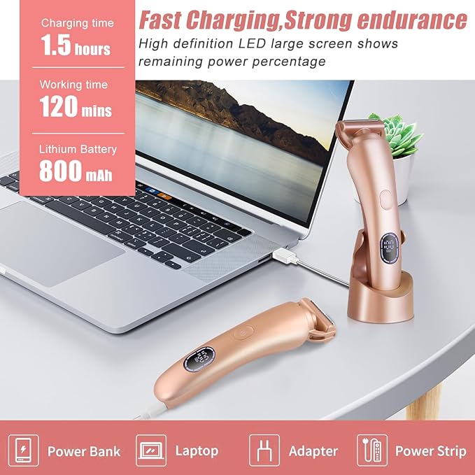 Electric Shaver for Women Bikini Trimmer Facial Hair Removal LED Display Womens Razors for Shaving IPX7 Waterproof Pubic Body Hair Trimmer