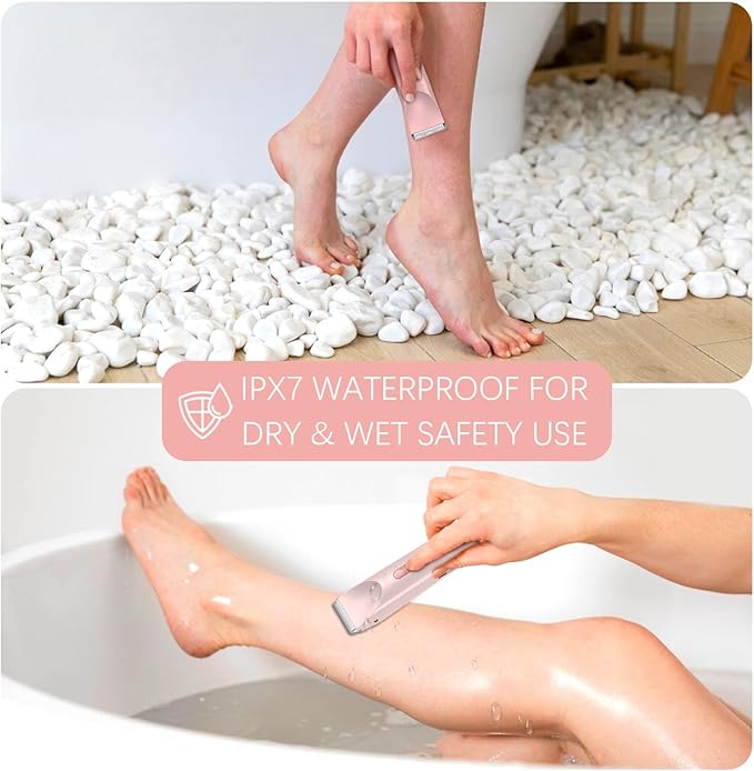 - IPX7 WATERPROFF FOR WET/DRY USE: Our women’s shaver for pubic hair features an IPX7 waterproof rating, designed for use in both wet and dry conditions. Making it ideal for shower or bath use, you can even submerge it water! The washable and removable heads simplify cleaning and upkeep, ensuring hygiene is always a breeze.