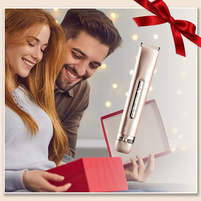 - 💖 2-in-1 Shaver & Trimmer for Total Body Grooming: Switch effortlessly between two built-in heads: a wide electric trimmer for bikini line, arms, and legs, and a precision round shaver for removing facial hair and peach fuzz.