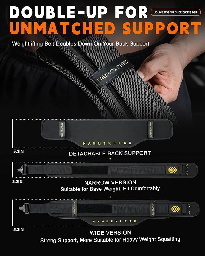 • 🔩 Double-Up for Unmatched Support - Elevate your squats and deadlifts with our dual-layer conforming design. MANUEKLEAR weightlifting belt doubles down on your back support, reinforcing the crucial L4 and L5 lumbar regions, allowing you to safely chase those personal records and handle significant weights with confidence.
