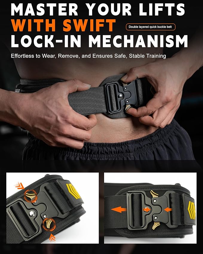 • 🏋️‍♂️ Master Your Lifts with Swift Lock-In Mechanism - With the MANUEKLEAR Weightlifting Belt, your workout efficiency hits new peaks. Engineered for the dedicated, our belt's innovative quick-lock carabiner mechanism allows for instant wearing and removal – because every second counts. The safety of your sessions is never compromised, ensuring you're secured in a snap for that next heavy lift.