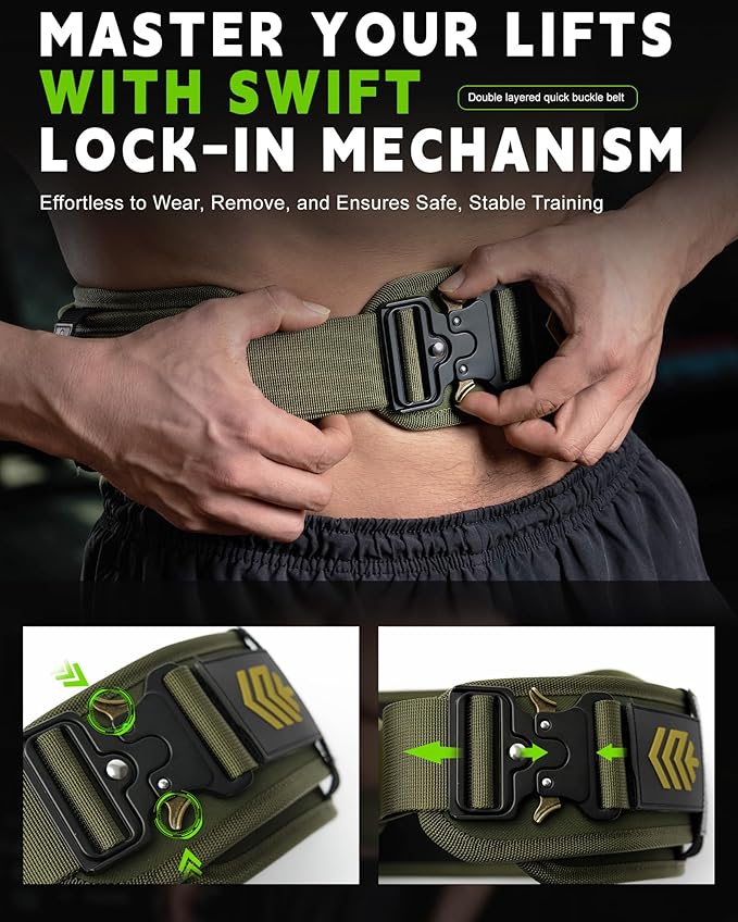 • 🏋️‍♂️ Master Your Lifts with Swift Lock-In Mechanism - With the MANUEKLEAR Weightlifting Belt, your workout efficiency hits new peaks. Engineered for the dedicated, our belt's innovative quick-lock carabiner mechanism allows for instant wearing and removal – because every second counts. The safety of your sessions is never compromised, ensuring you're secured in a snap for that next heavy lift.