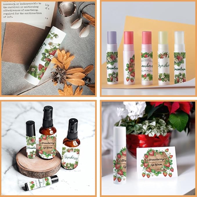 • Ample Quantity--You will get a total of 4 different styles of strawberry pattern lipstick tube stickers, 25pcs/style, 100pcs in total, size size about 54mm/2.1 inch wide, 44mm/1.7 inch long.