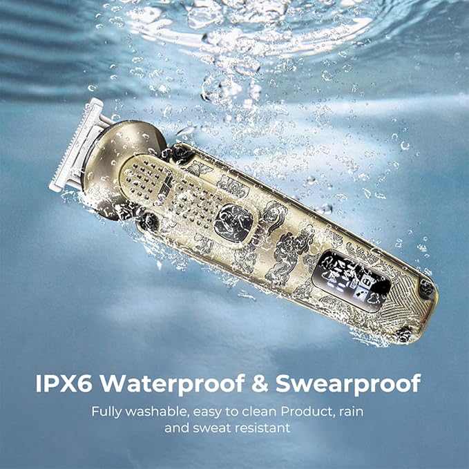 - IPX6 Washable and Ergonomic design: This men's beard trimmer's IPX6 waterproof construction makes it easier to clean up after usage in the shower and simplifies the grooming procedure, making it more accommodating to a variety of tastes and lifestyles. Long lasting grip and trimming ability, low risk of wrist fatigue, and ease of usage has a lovely look. Small in size and light in weight